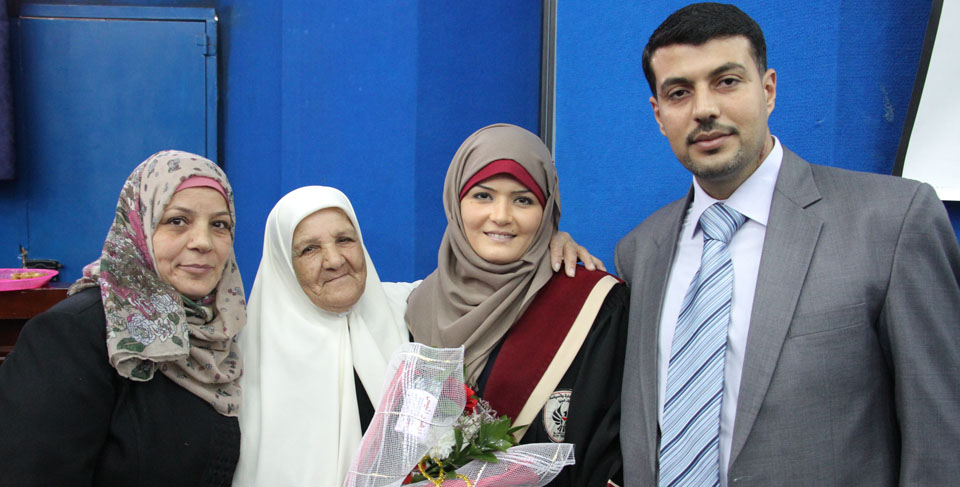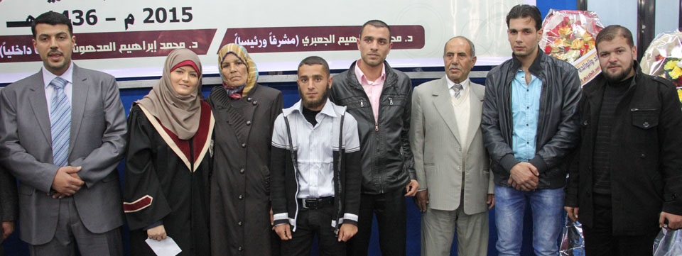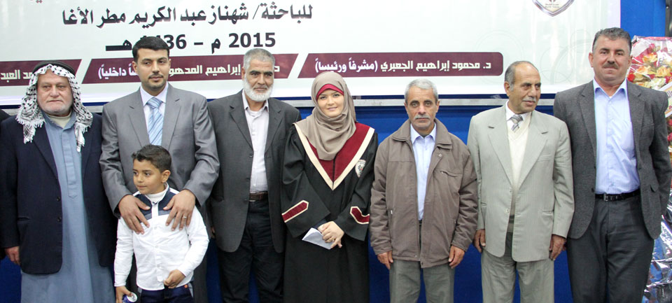 أ. طلعت الأغا، أ. ماجد ماجد الفرا، أ. حمدي عودة الأغا، مراد ومحمد شقيقا الباحثة، والدة الباحثة، الباحثة، زوج الباحثة
