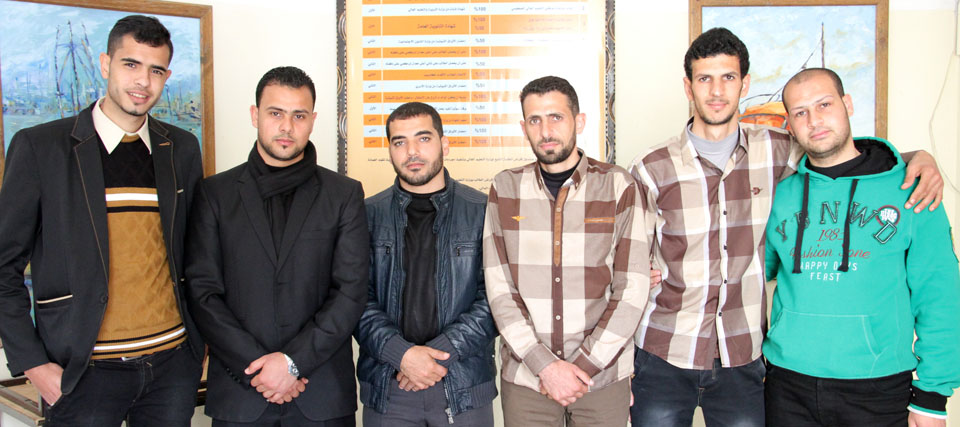 أ. سفيان شبير، أ. فؤاد أيوب الأغا، زوج الباحثة، أ. كرم أحمد الأغا، أ. علاء خميس الأغا، مراد(شقيق الباحثة)