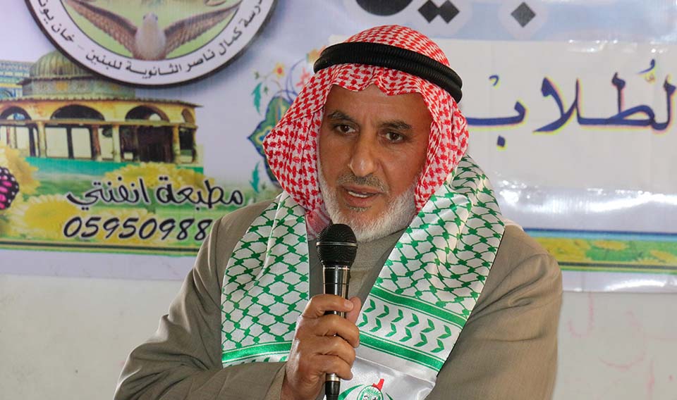 النائب د. يونس الأسطل، أ. صهيب غانم صالح أبو غانم، مدير مدرسة محمد النجار أ. خالد ضهير
