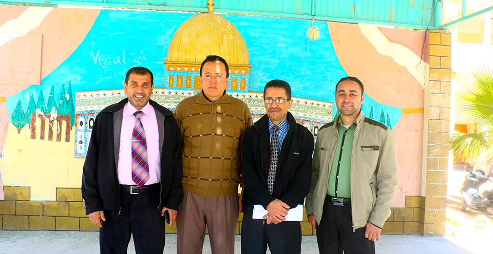 المرشد التربوي أ. يوسف حمدان، نائب مدير المدرسة ا. أحمد مصباح فارس، أ. اديب شكري الأغا، ا. معاذ أحمد محمد(نمر)حمدان