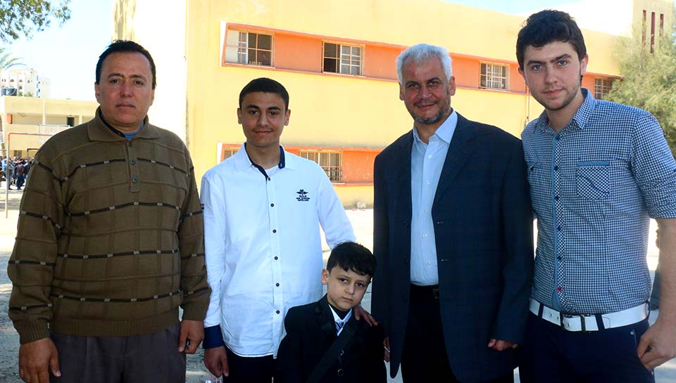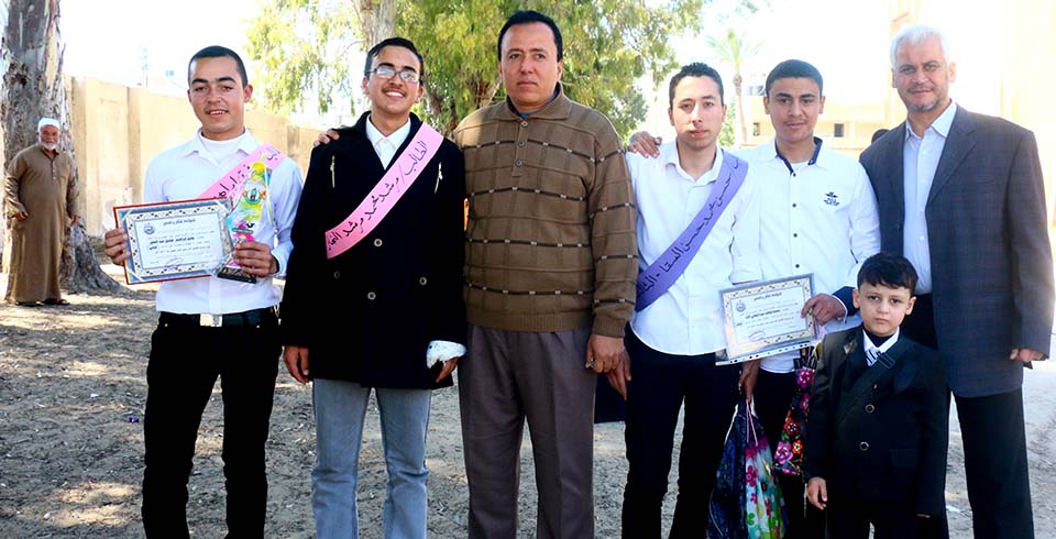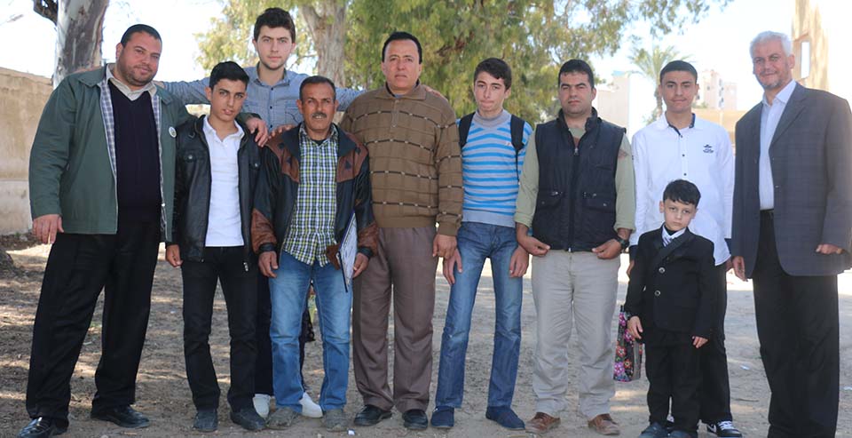 أ. ايهاب عبدالمعطي الأغا ونجليه سعيد وعبدالمعطي، أ. اديب شكري الأغا، الطالب مرشد محمد مرشد النجار