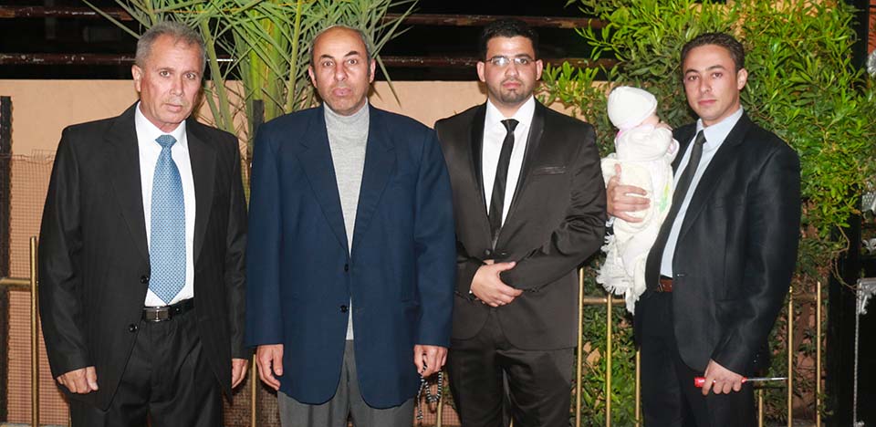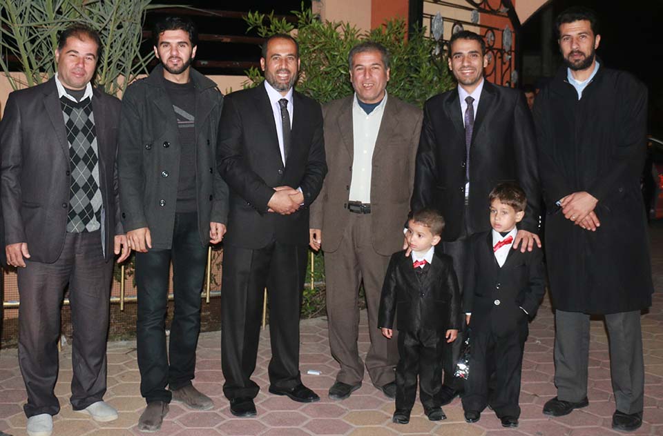 سعيد(شقيق العروس)، محمد مروان الأغا وشقيقه سليم وشقيقتهم رغد، د. مروان سليم الأغا(خال العروس)، والد العروس، سراج منير الأغا