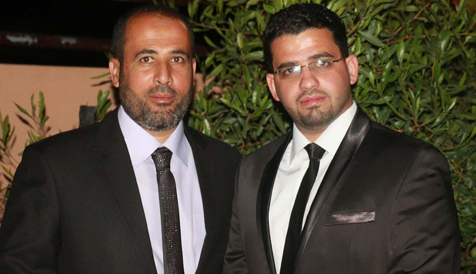 أصيل ووالده أ. نمر سعيد الأغا(عم العروس)، أ. منير سليم الأغا(خال العروس)