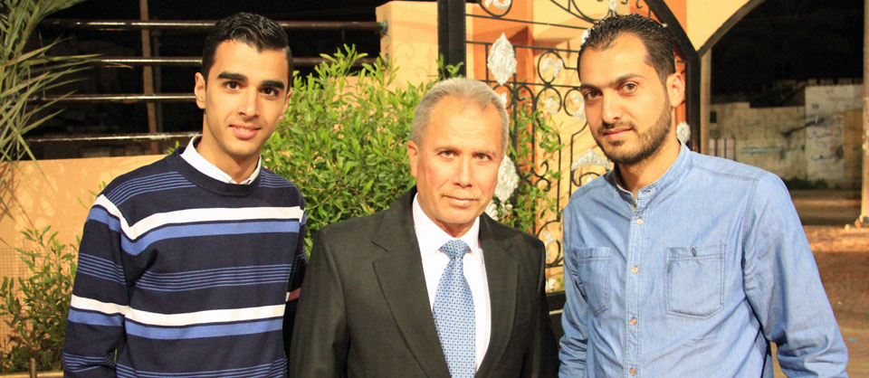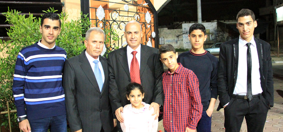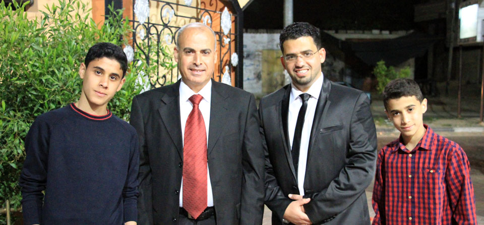 أ. سمير سليم الأغا(مدير تلفزيون فلسطين في غزة) يتوسط نجليه أحمد ومحمد