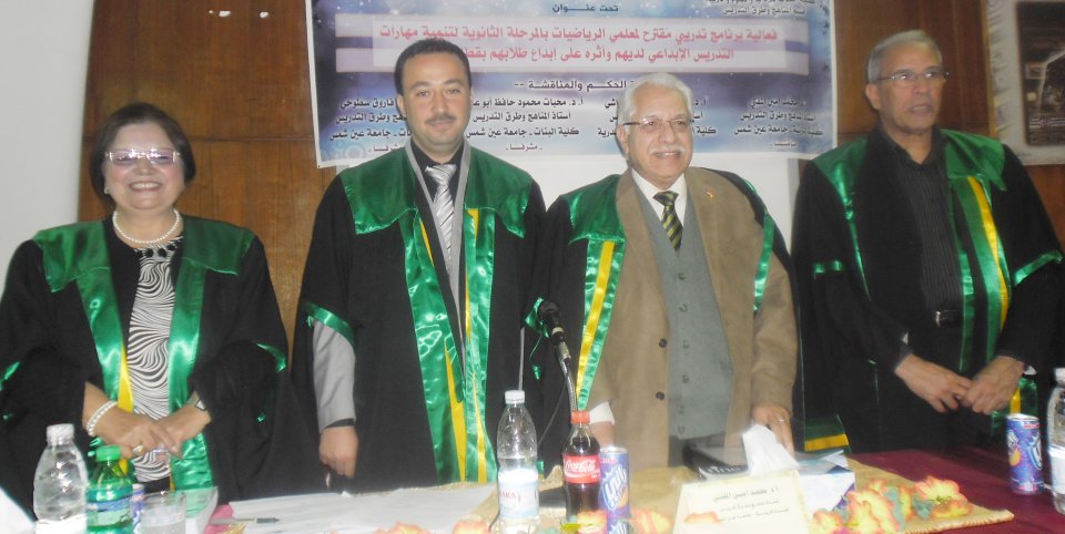 1. أ.د. محبات محمود حافظ أبو عميرة، أستاذ المناهج وطرق التدريس بكلية البنات بجامعة عين شمس، مشرفاً