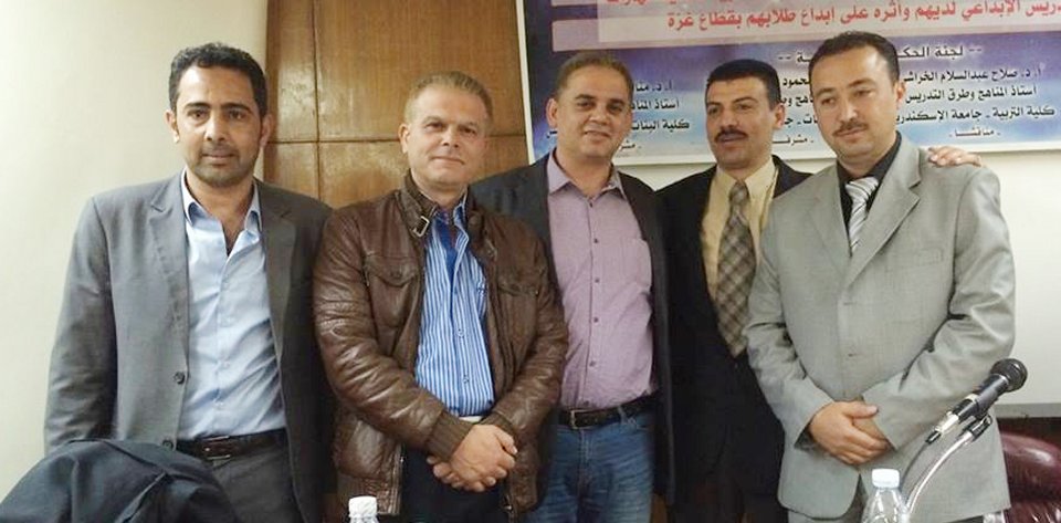 أ. ماهر صافي، أ. بسام زهير، الباحث، أ. سامي حميدان شعت، أ. محمد حاسي