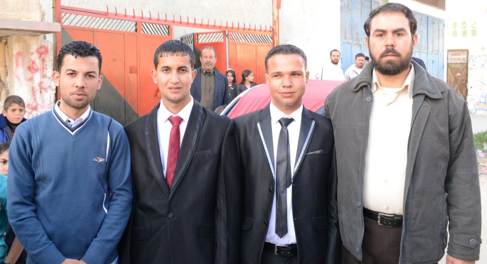 علي عبدالجواد الاغا، والد العريس، نعيم صلاح الاغا، العريس، محمد البيوك (زوج أخت العريس)