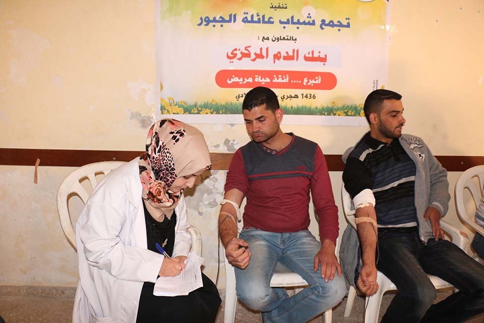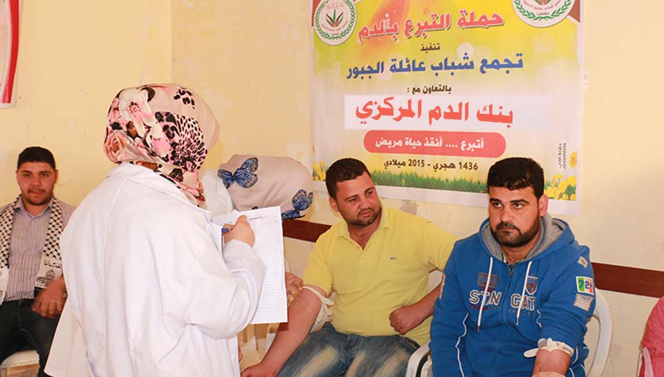 خان يونس- جورة اللوت- ديوان عموم أل الجبور- إنطلقت فعاليات مبادرة التبرع بالدم، والتي قام بها تجمع عائلة الجبور مع بنك الدم المركزي ، حيث شارك شباب عائلة الجبور بنحو 20 متبرع، وتأتي هذه المبادرة على غرار مبادرات قامت بها بعض العائلات في مدينة خان يونس.