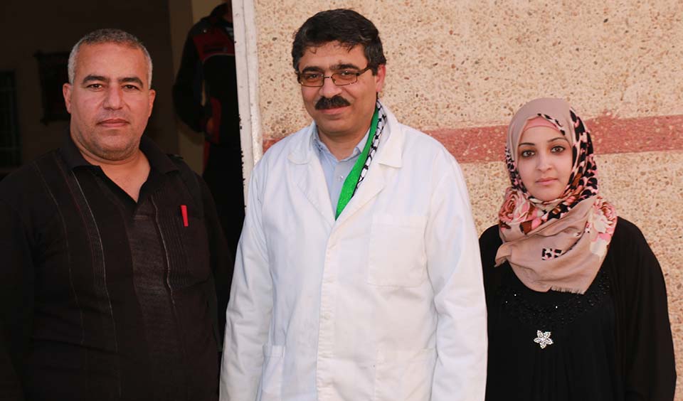 د. شيماء العقاد (منسقة الحملة)، د. سالم شبير(مختبر بنك الدم المركزي)، أ. ياسر الأغا(منسق الحملة)