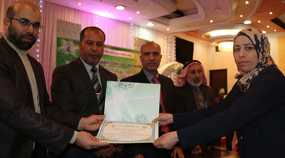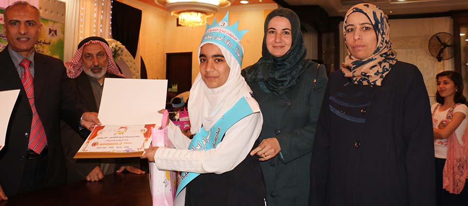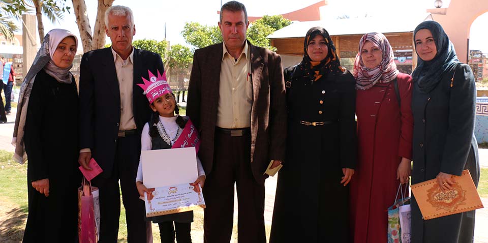 تكريم مرام إبراهيم طاهر الأسطل ومدرستها أ. إيمان محمد عودة الأغا ومديرتها أ. ناريمان فريد الأغا