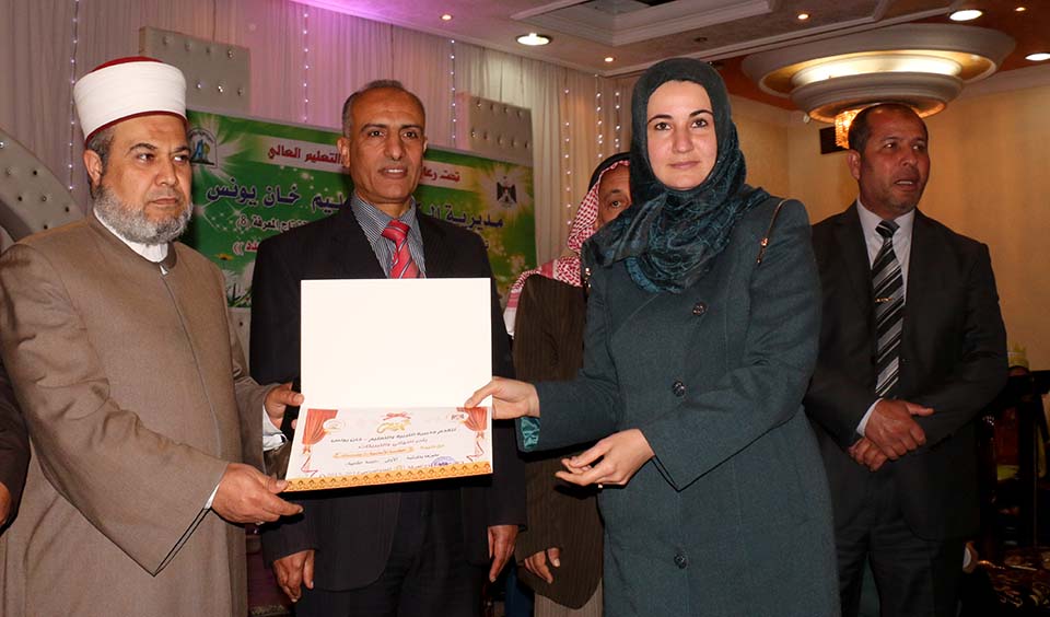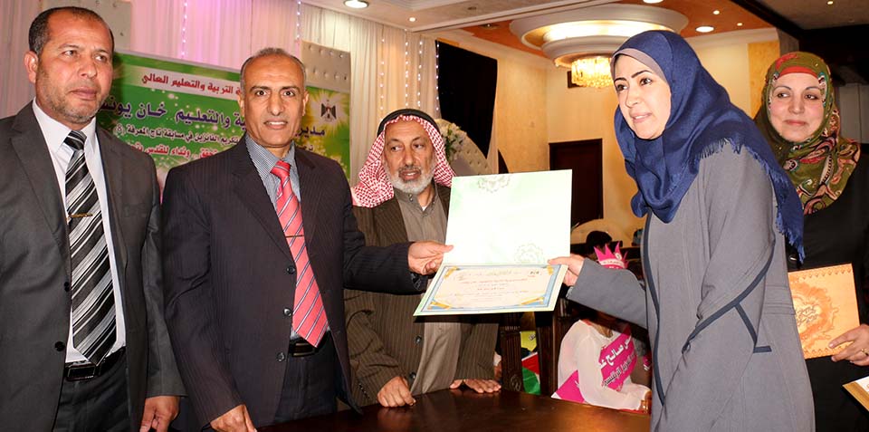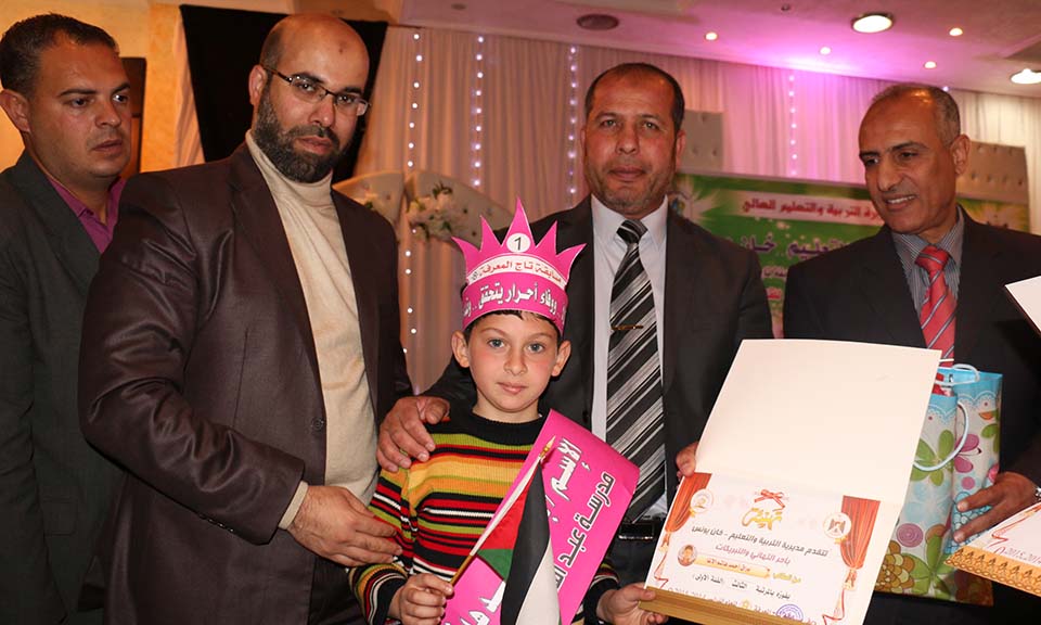 خان يونس- السطر الشرقي- صالة رويال بالاس- الخميس الموافق 2-4-2015- نظّمت مديرية التربية والتعليم - خان يونس جنوب قطاع غزة حفلًا لتكريم الطلبة المتفوقين في مسابقة تاج المعرفة 8