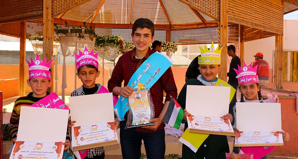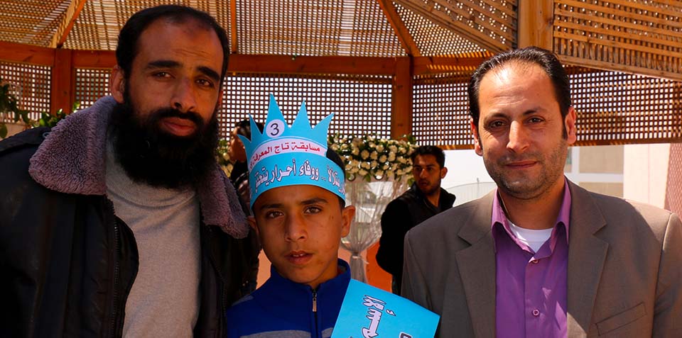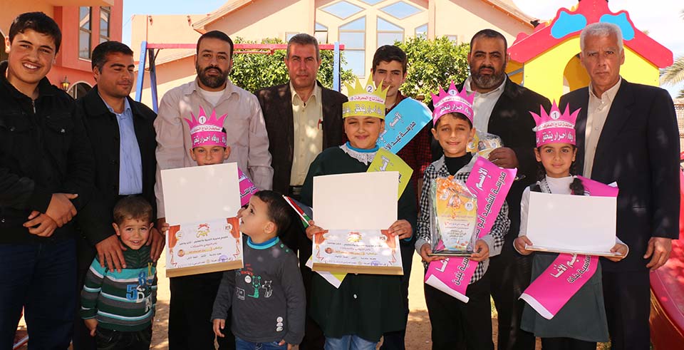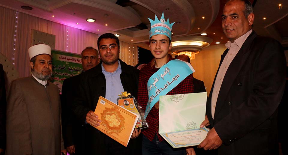 تكريم الطالب علي براء يوسف الأغا ومدرسه أ. حسين الأسطل(ابوشاكر)، أ. رجب رمضان الأغا (مدرسة عيد الأغا- بنين)