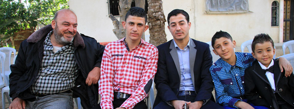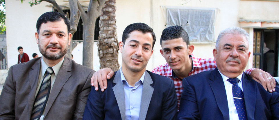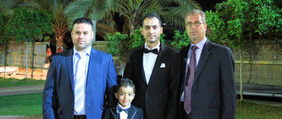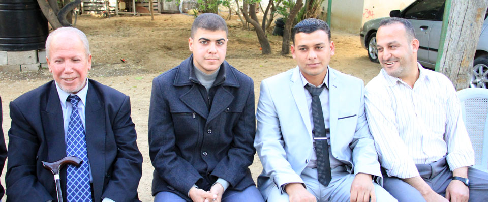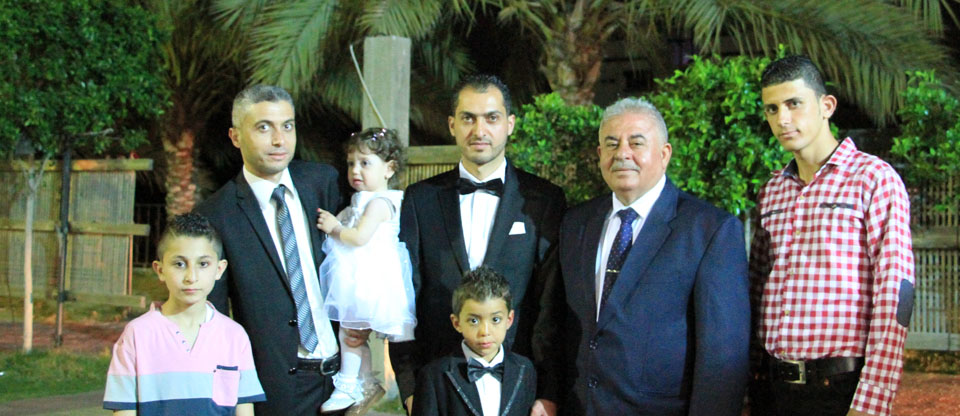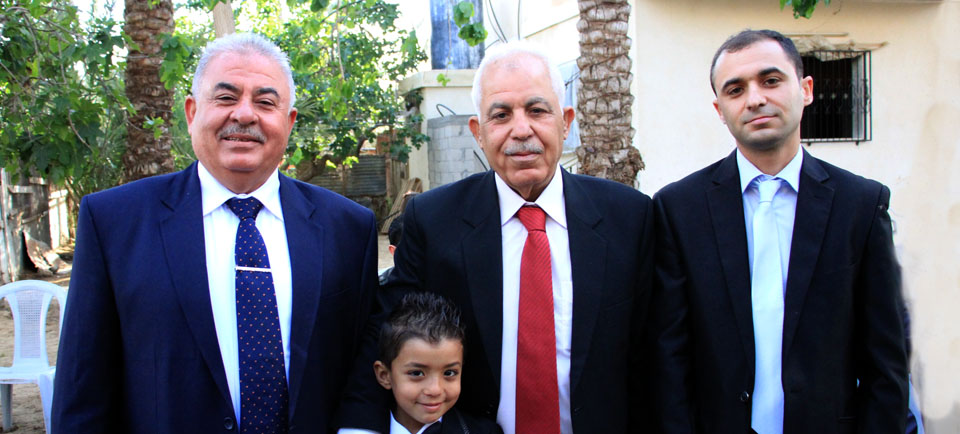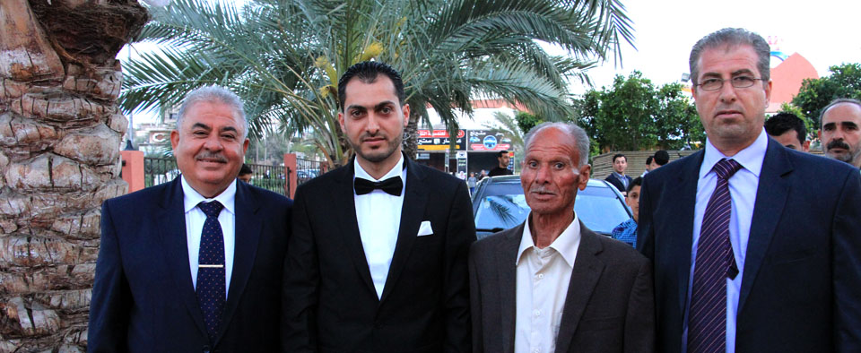 عدنان(عم العريس)، الحاج جهاد يوسف الأغا، والد العريس، أ. أنور شعت، العريس،
