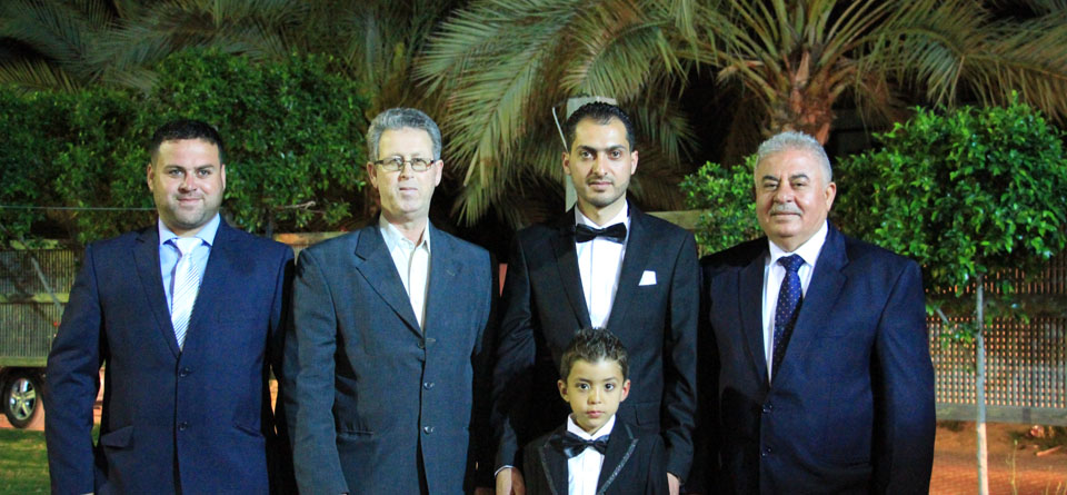 إيهاب باسم الأغا وشقيقه أحمد ، العريس، أ. باسم جابر الأغا، شريف شعبان الأغا،