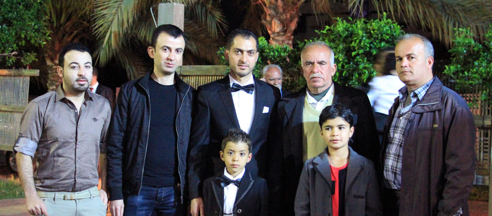 أ. محمد الأغا، الحاج حمتو قاسم الأغا(جد العروس)، أ. حسام(عم العروس)، والد العروس، العريس، عدنان(عم العريس)، أ. قاسم ونجله محمد