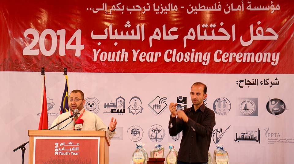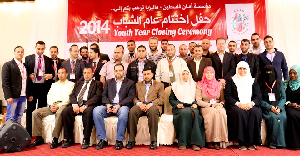 نظمت مؤسسة أمان فلسطين ماليزيا الخميس حفلًا ختاميًا لفعاليات وأنشطة عام الشباب الفلسطيني في غزة الشاليهات القاعة الملكية الخميس الموافق 9-4-2015 حفل إختتام عام الشباب مؤسسة أمان فلسطين ماليزيا والذي انطلق في أبريل من العام الماضي.