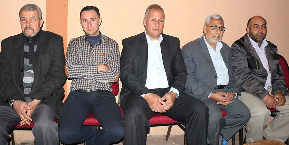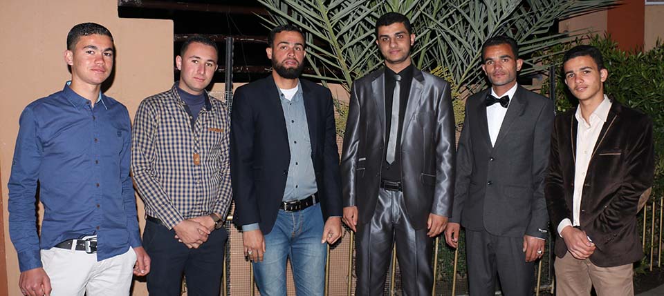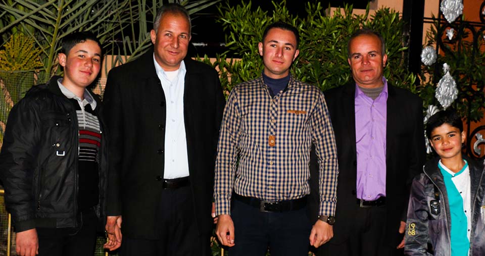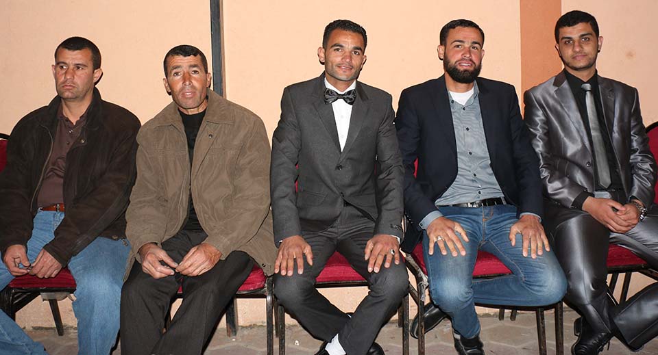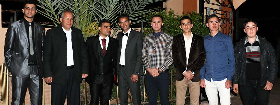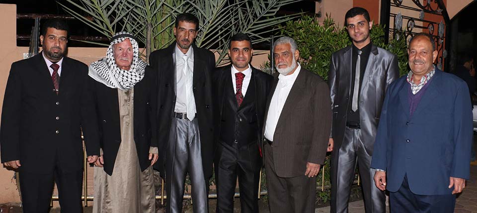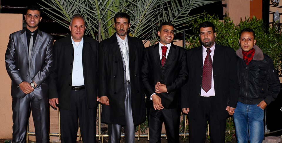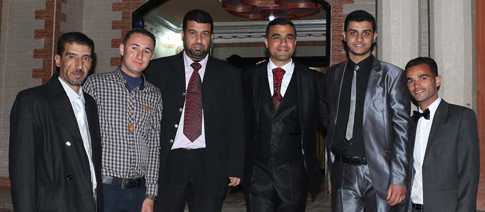 أحمد محمد صالح الأغا(إبن خالة العروس)، السيد عمار الأغا( خال العروس)، السيد إيهاب (شقيق العروس)، العريس، الحاج محمد صالح الأغا(زوج خالة العروس)
