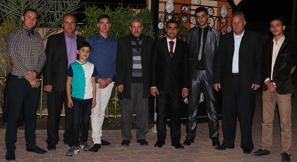 مهند عمرو الأغا وشقيقه محمد (إبنا خال العروس) ووالدهم السيد عمر، فراس عمار الأغا(إبن خال العروس)