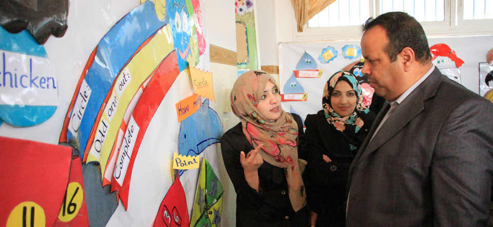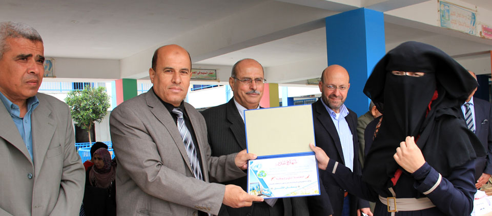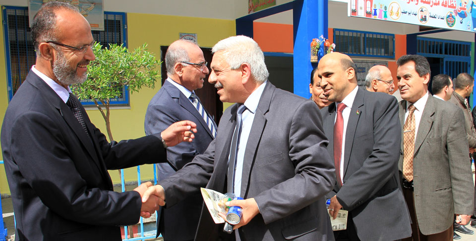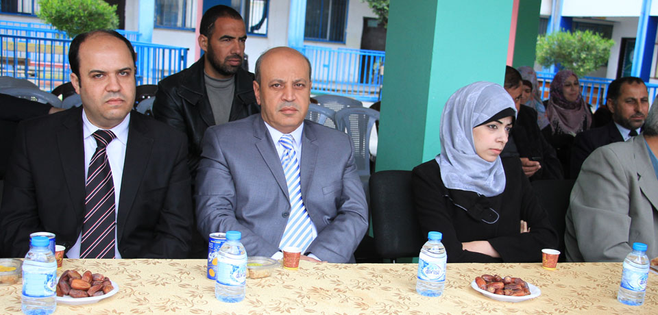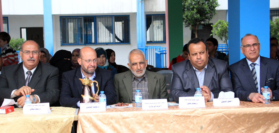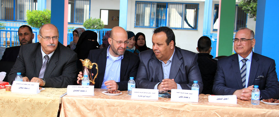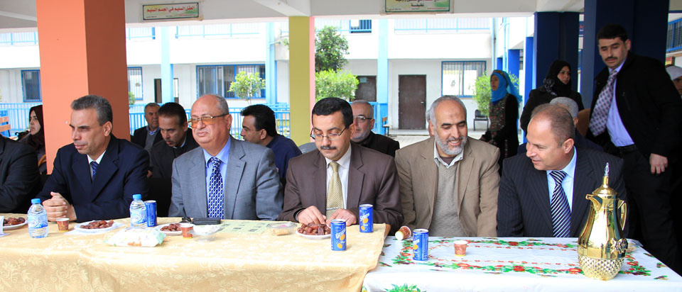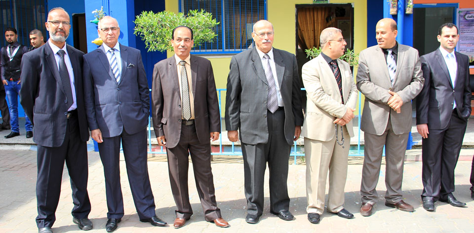 أ. فايز صالحة(مدير مدرسة)، موجه ياسين أبو حطب، موجه الرياضيات يحيى ماضي، د. صهيب كمال الأغا،