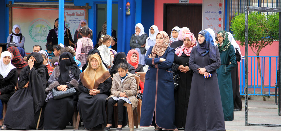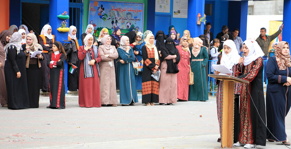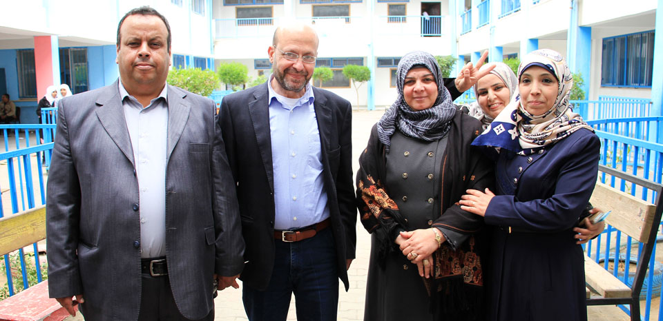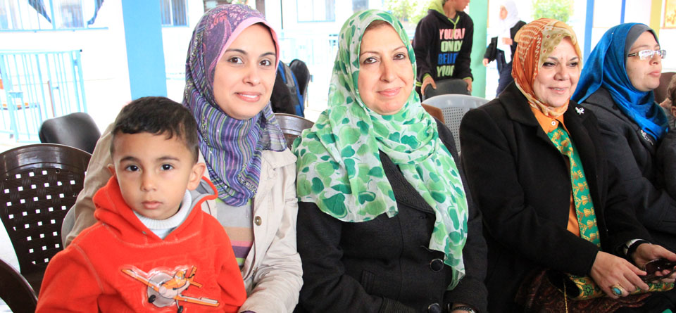 أ. منى أبو مساعد(مدير مدرسة دير البلح)، د. سناء عفانة(مديرة منطقة دير البلح والمغازي)، أ. مي النباهين، أ. رأفت الهباش