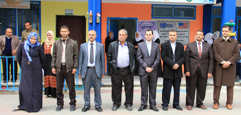 أ. دعاء شراب، أ. مريم أبو النجا(وكيل مدرسة الفخاري الإعدادية)، أ. نجوى عاشور(مدير مدرسة الفخاري الإعدادية)،