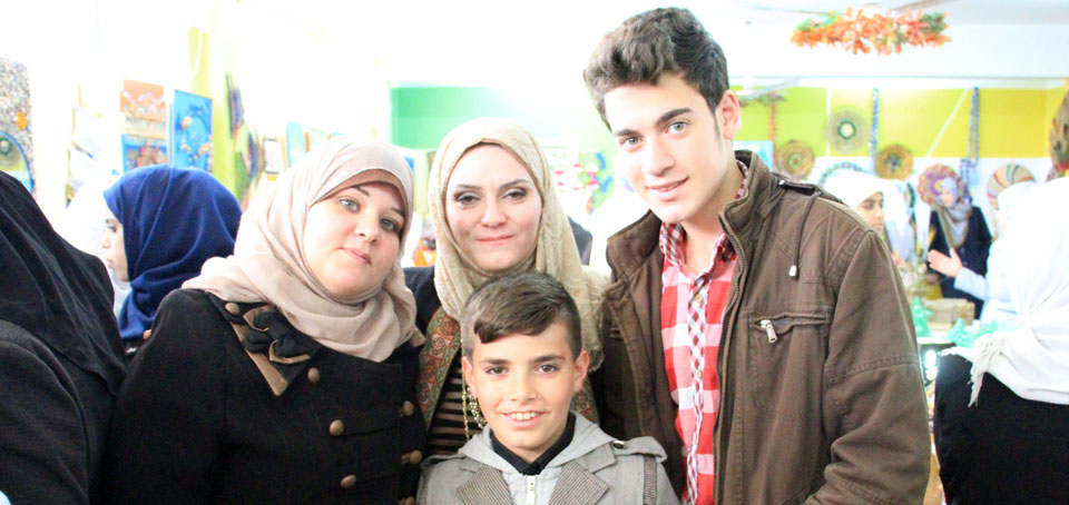 أ. رندا عيد ونجلها محمد، أ. دعاء شراب، أ. ثريا شحيبر، ا. إيمان العمور منسقة المسابقة الدولية، أ. مي النباهين