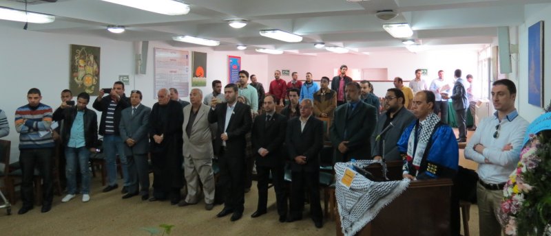 د.نادر تحسين، أ.معيد جمال، د.عاطف شعت، الحاج احسان الاغا، الباحث،العميد فتحي ابوسمرة، العميدنوفل جندية