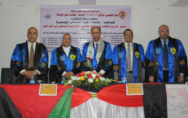 مصر- الإسكندرية الخميس الموافق 16/4/2015 ينال الباحث محمد سعيد سليمان أبوسمرة درجة الدكتوراة، في كلية التربية الرياضية جامعة الإسكندرية، وأوصت اللجنة بطباعة الرسالة على نفقة الجامعة، وتبادلها مع الجامعات المصرية والعربية، ألف مبارك