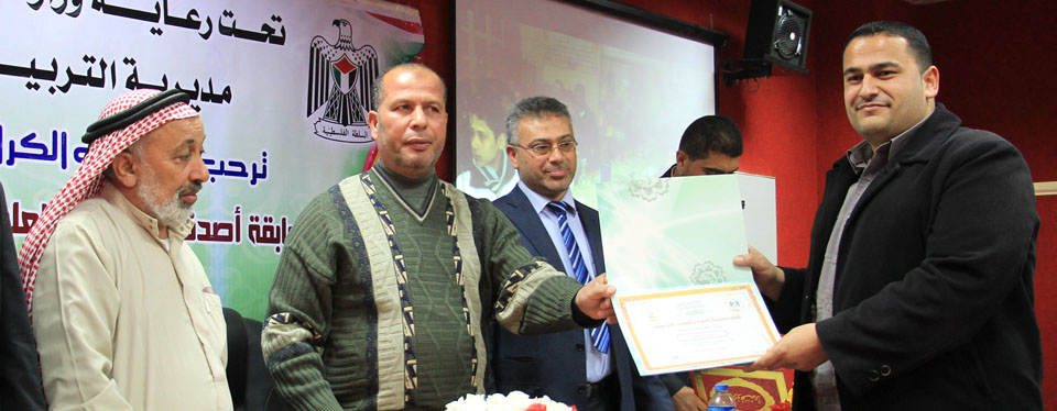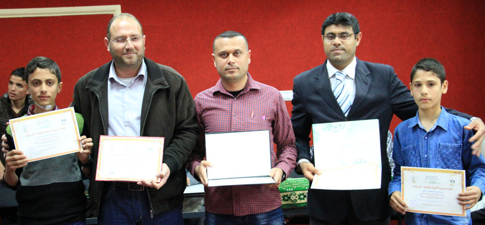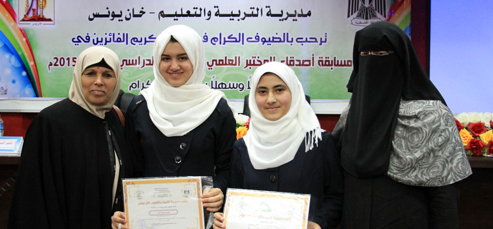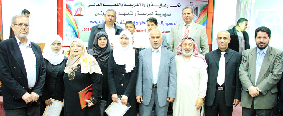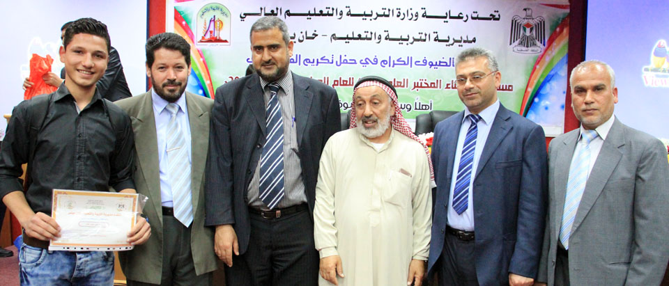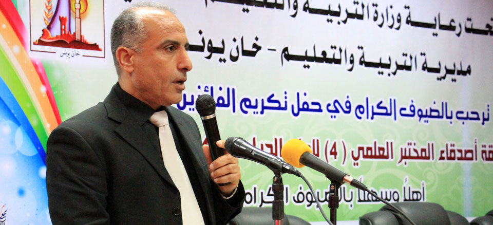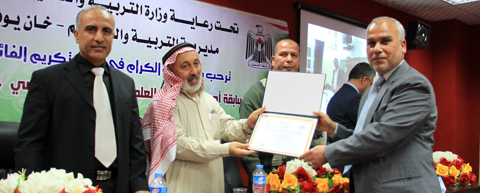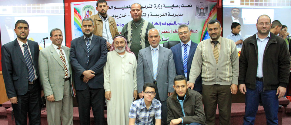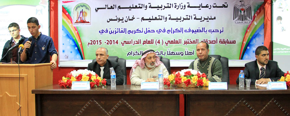 كرمت مديرية التربية والتعليم بخان يونس يوم الاثنين الموافق 20/4/2015، المدارس والطلبة الفائزين في مسابقة أصدقاء المختبر العلمي”4″, والتي عقدتها المديرية على مستوى طلبة الصف السابع والعاشر الأساسي بمدارس المديرية، وأقيمت فعاليات الحفل في مركز التدريب التربوي، وحضر الفعاليات: م. كمال أبو معيلق مدير عام التقنيات، وأ. حسين أبو شمالة مدير الدائرة الإدارية، وأ. ناصر السدودي مدير الدائرة الفنية، ود. محمد أسامة عامر رئيس قسم المتابعة والإشراف المخبري، وأ. محمد إنشاصي مشرف المختبرات العلمية بالمديرية، ونخبة من رؤساء الأقسام والمشرفين التربويين، ووفد من نقابة المعلمين ترأسه أ. خالد المزين نقيب المعلمين في قطاع غزة، ومديري ومديرات المدارس، وقيمي المختبرات العلمية، ومعلمي العلوم والطلبة، ولفيف من أولياء الأمور.