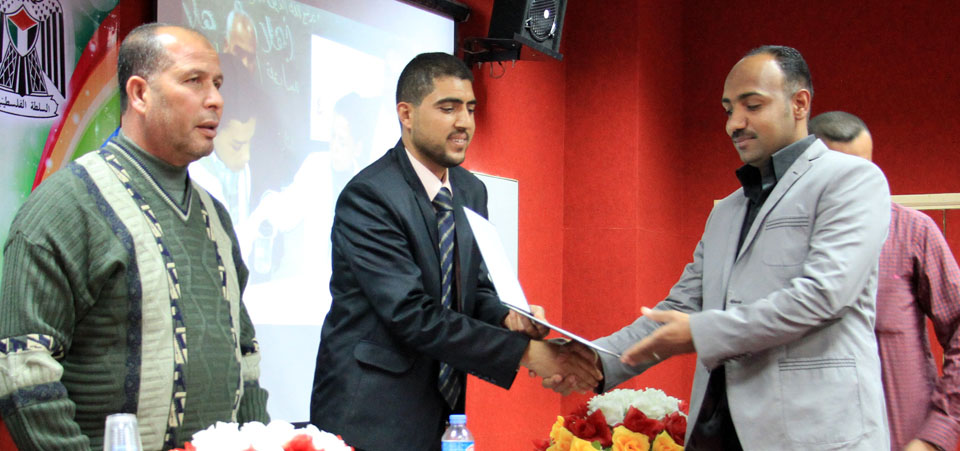 أ. محمد إنشاصي مشرف المختبرات العلمية بالمديرية، أ. حسين أبو شمالة مدير الدائرة الإدارية،