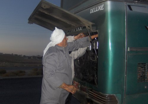 الحاج رشاد خلال محاولة اصلاحه للباص
