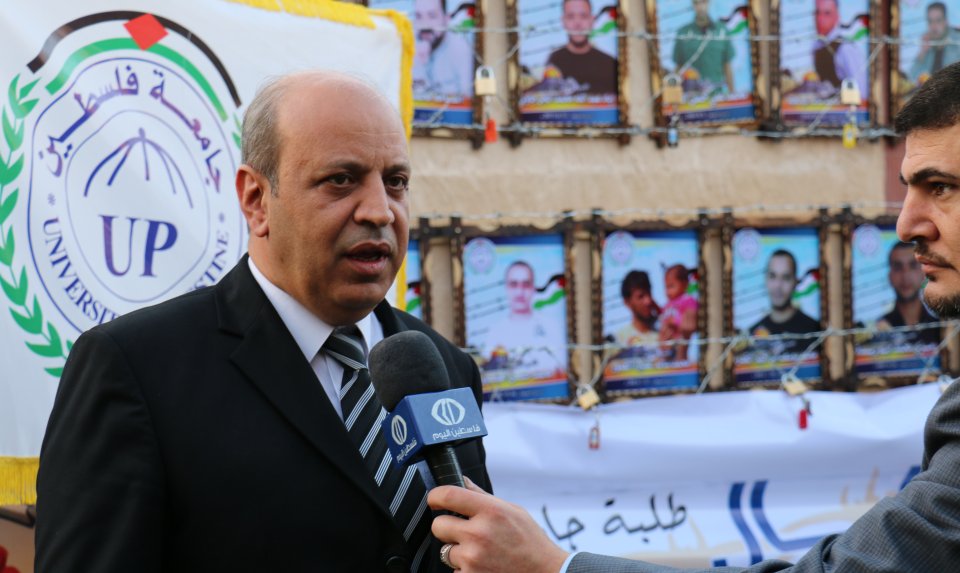 الأربعاء الموافق 22-04-2015- أقامت جامعة فلسطين فرع خان يونس- احتفالاً تحت عنوان "ازرع غصنا تكسر قيداً" دعماً للأسري في يوم الأسير الفلسطيني والعربي، ويأتي الاحتفال ضمن الالتزام الوطني بقضايا شعبنا وثوابته الوطنية .