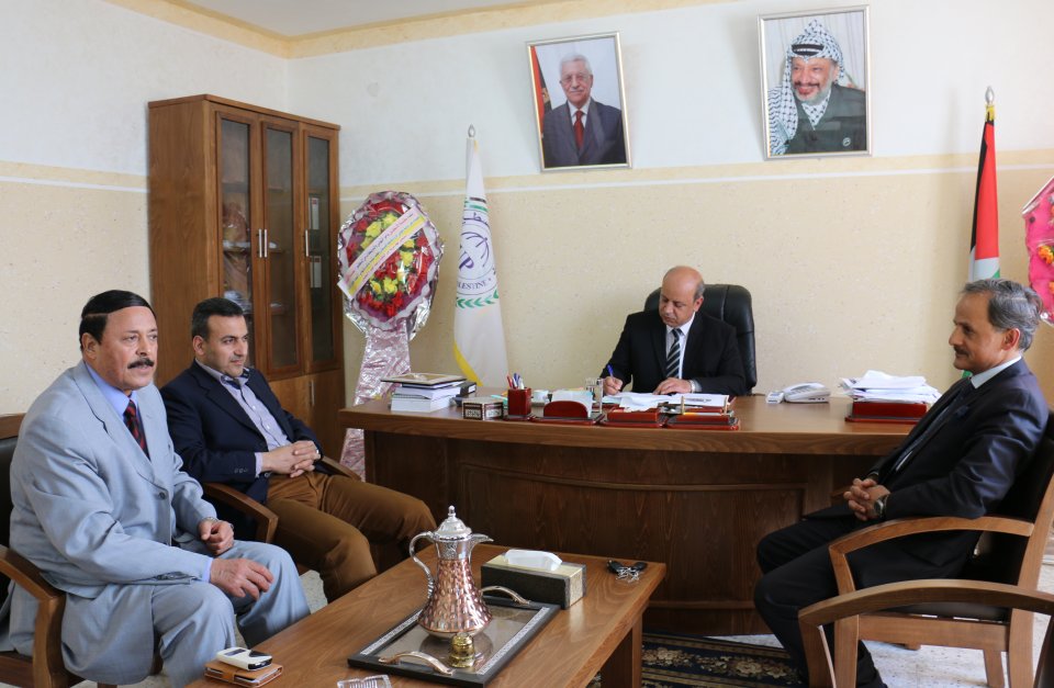 د. محمد أبوسعدة(النائب المالي والاداري)، م. عماد الأغا(رئيس مجلس الإدارة)، أ. شادي عويضة(عضو مجلس ادارة الجامعة)،