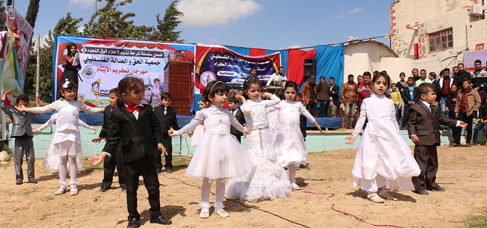 منتجع الهابي سيتي- خان يونس- طريق رفح الغربية- الثلاثاء الموافق 23/4/2015- تحت رعاية جمعية الحق والعدالة الفلسطيني، وبمشاركة من المجتمع المحلي، أقيم مهرجان اليتيم الفلسطيني، وشمل 1500 يتيم من المحافظة الجنوبية، حيث حضر لهذا الحفل شخصيات من المجتمع الفلسطيني.