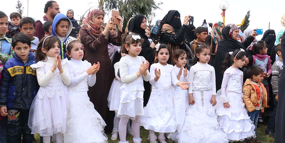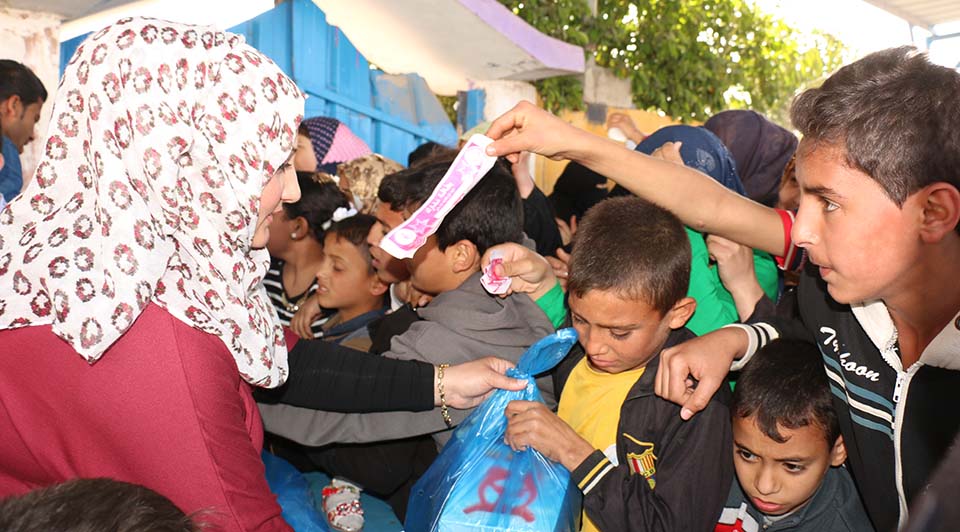 وفي نهاية الحفل كانت فقرة التكريم، ومن ثم توزيع الهدية للأطفال والتي كانت تشمل طبق حلويات ولعبة لكل طفل