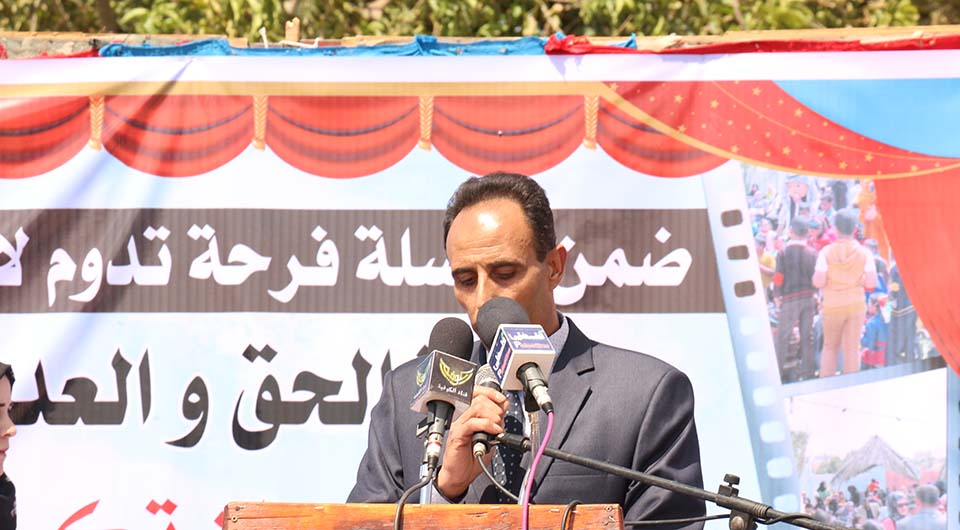 وقال المدير العام للمهرجان الأستاذ محمد سليمان فياض بان هذا المهرجان يأتي في سياق الترفية المعنوي وجزء بسيط مادي للايتام وشكر كل من ساهم في إنجاح المهرجان وخص بالذكر المتطوعين داخل الجمعية لانهم لم ينامو كي يبتكروا ويفكروا في إنجاح المهرجان وقال ان الايتام نحتفل فيهم اليوم ونرعاهم كل يوم
