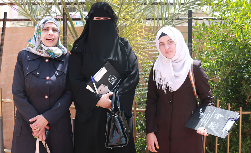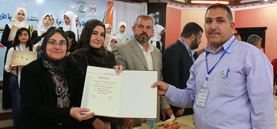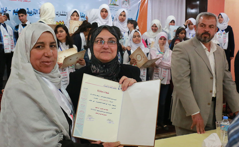 أ. ميساء عادل سلامة، طالبات مدرسة حيفا ومديرة المدرسة أ. ناريمان الأغا، أ. أنعام حمدان