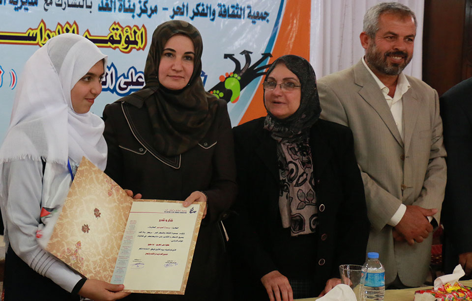 وفى كلمتها الافتتاحية قالت مدير عام جمعية الثقافة والفكر الحر مريم زقوت : أمنا منذ انطلاق مؤسستنا قبل نحو ربع قرن ان الاستثمار الحقيقي في الانسان الفلسطيني( طفل – فتى – فتاة – شاب – امرأة )، من خلال اعداده وتمكينه من الادوات والمهارات اللازمة ليصبح فاعلا وقادرا على صناعة التغير الإيجابي في مجتمعه وقيادته نحو الافضل .