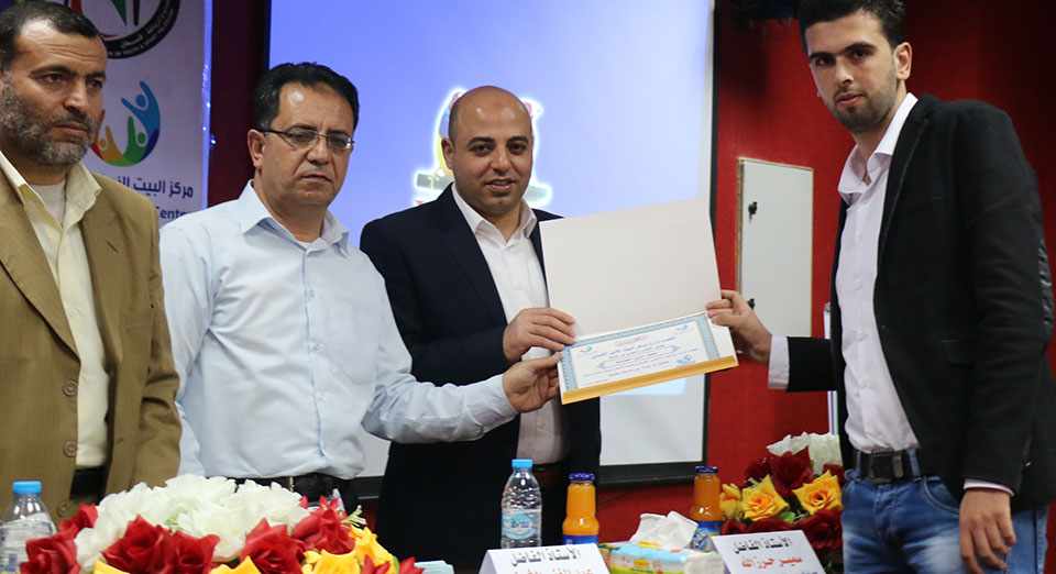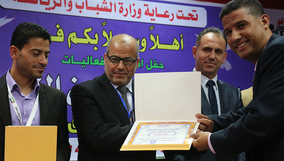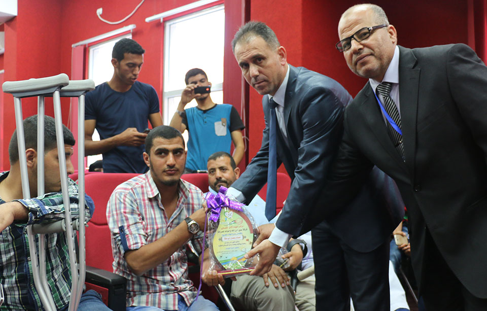 وفي نهاية الحفل تم تكريم المساهمين والمشاركين في هذا الحفل وتكريم جرحى حرب غزة 2014