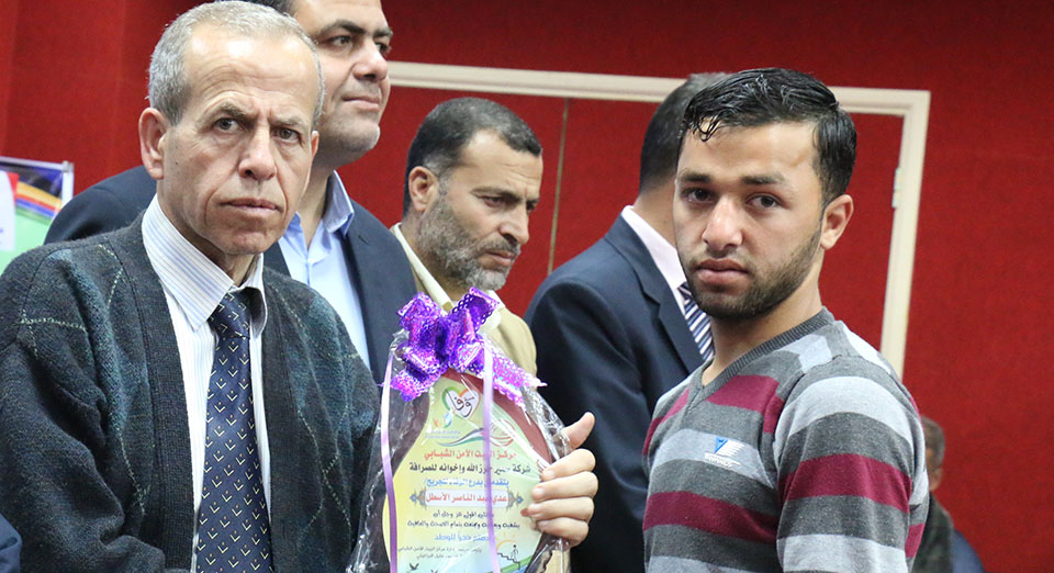 تكريم الطفل المصاب حسام رمضان أبودقة