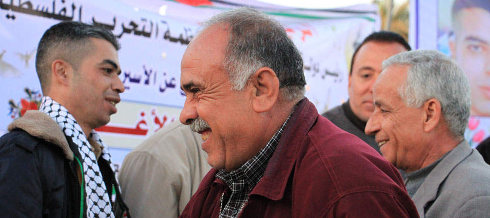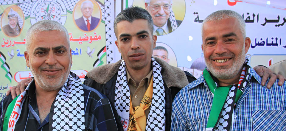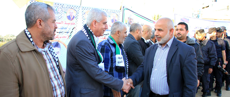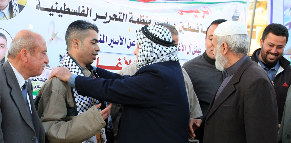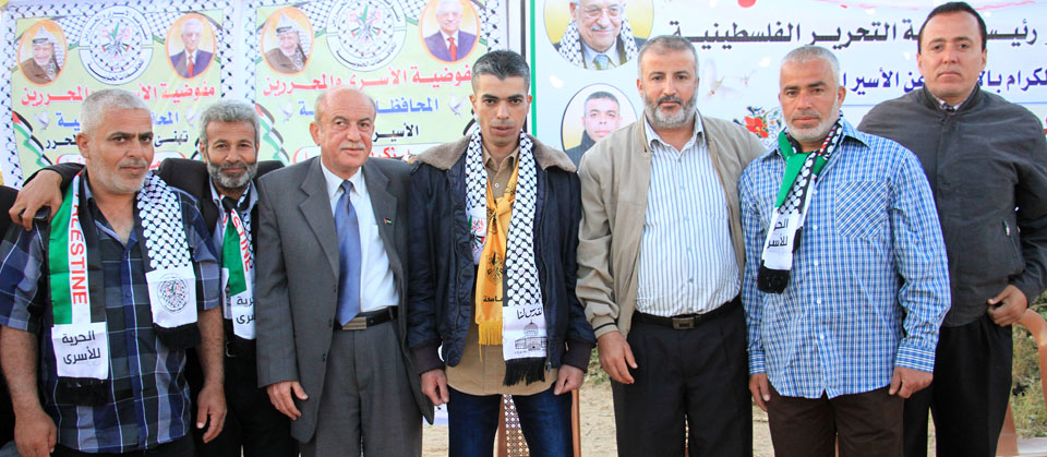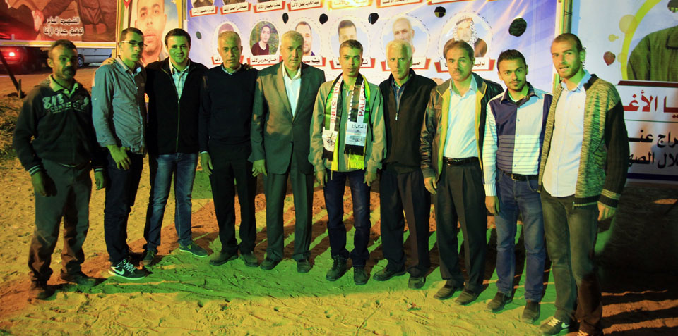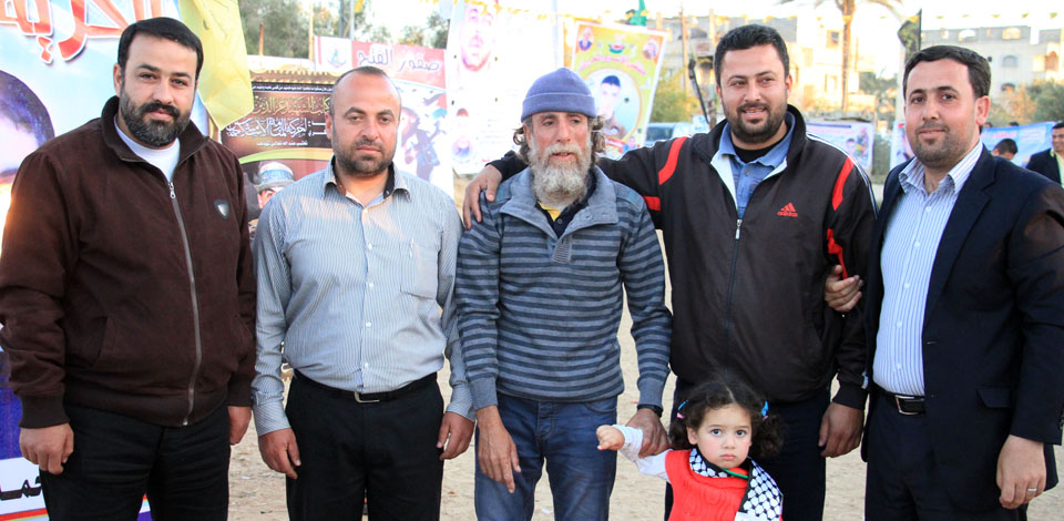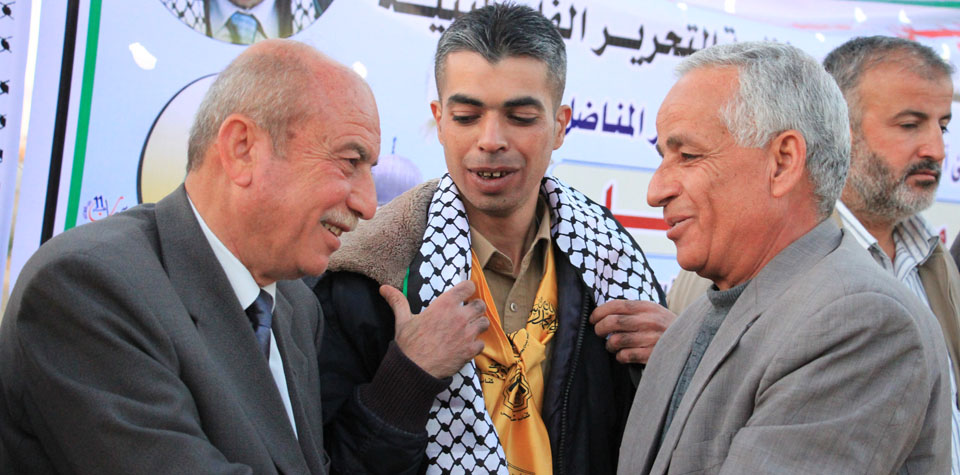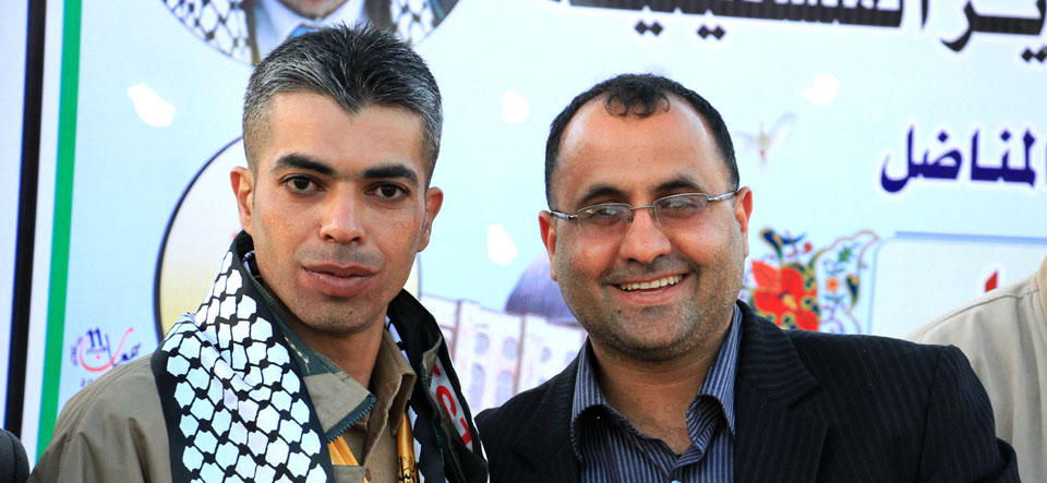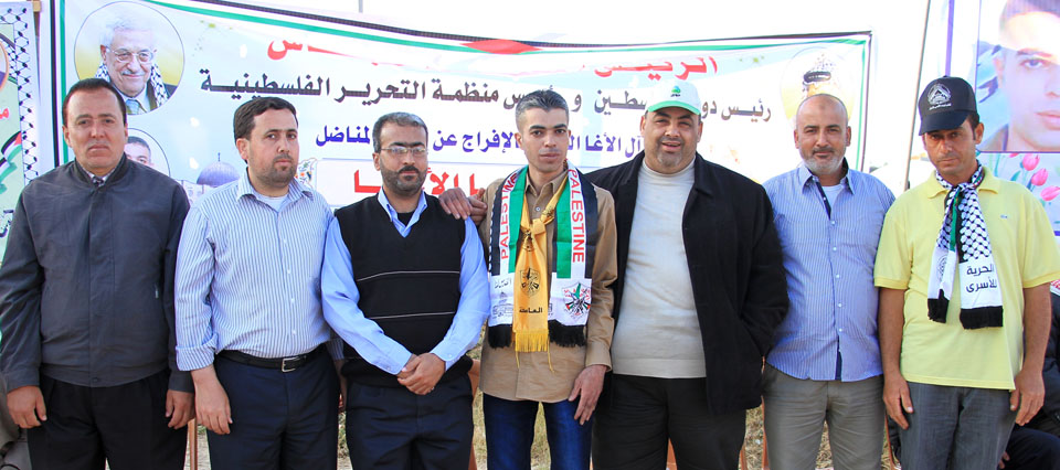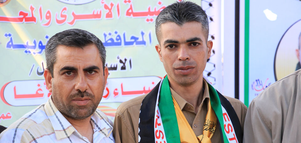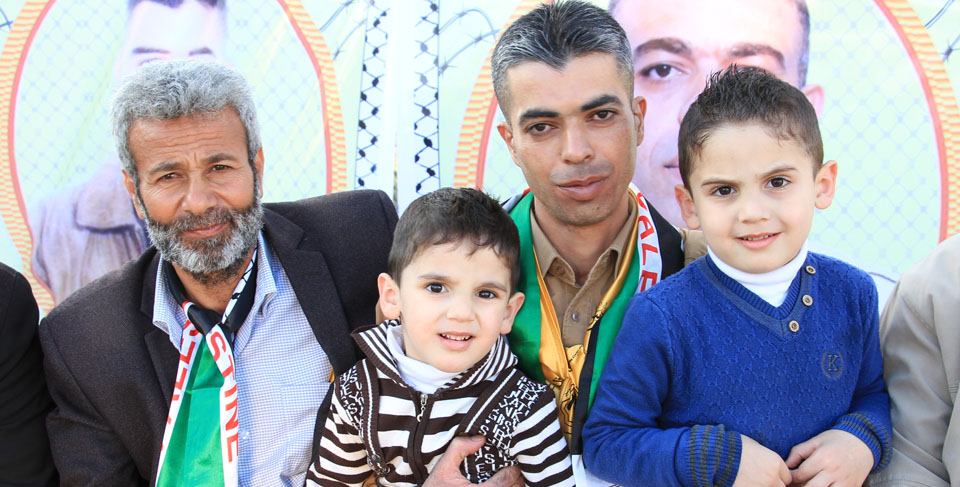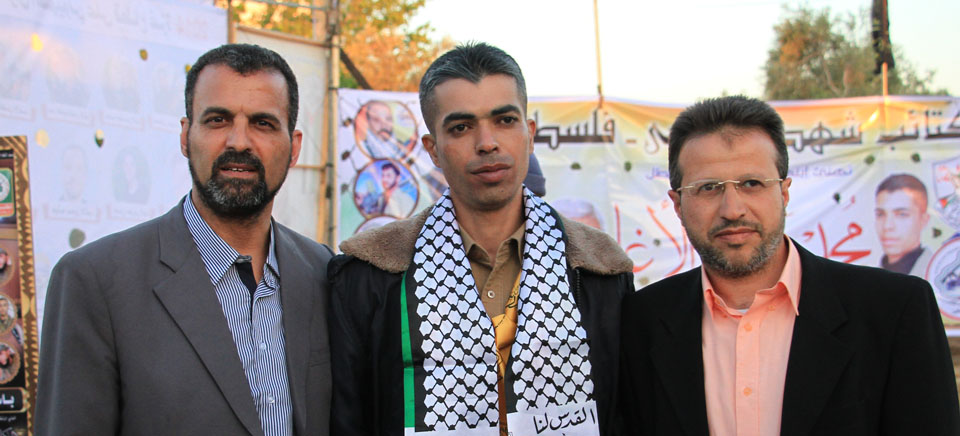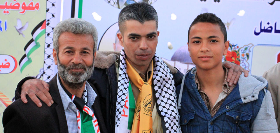 الأسير المحرر يتوسط شقيقيه حازم وعزام