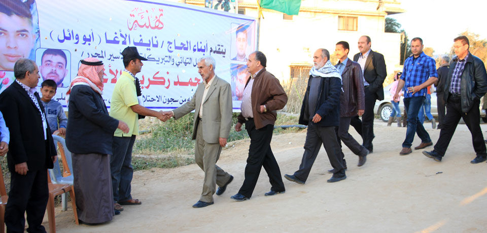 صور استقبال المهنئين للأسير المحرر محمد زكريا الأغا