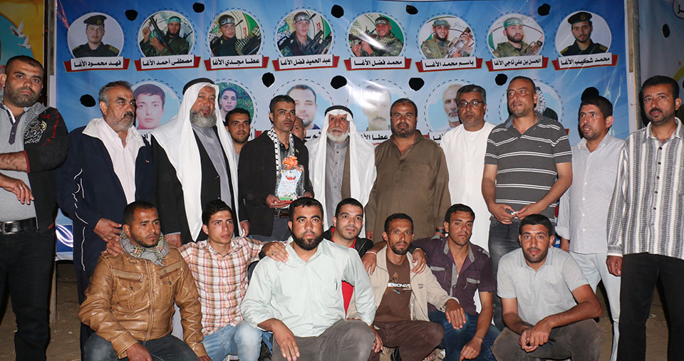 خان يونس- السطر الغربي- منزل والدة الاسير المحرر محمد زكريا الأغا- صور المهنئين بالافراج عن الاسير محمد زكريا شاكر الاغا