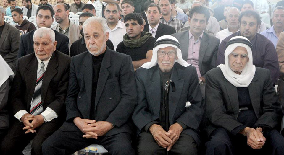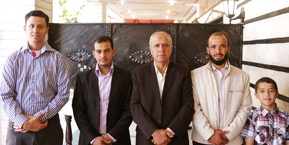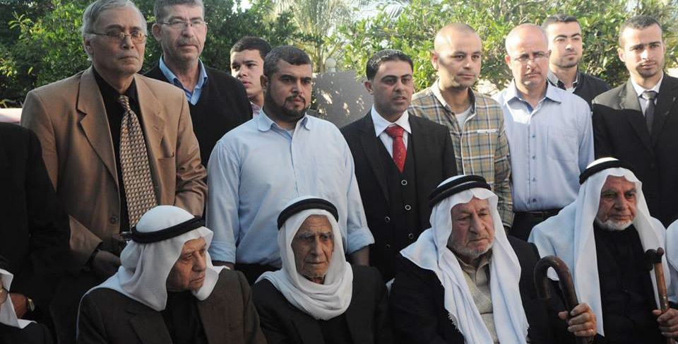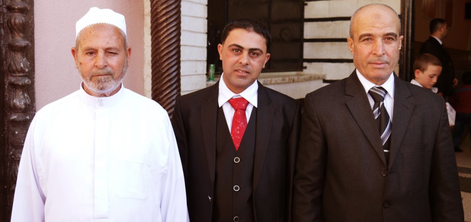 أ. رأفت النجار، العم وديع الأغا، الحاج عوني(جد العروس)، أ. فخري شبير، ا. محمد عبدالمعطي الأغا