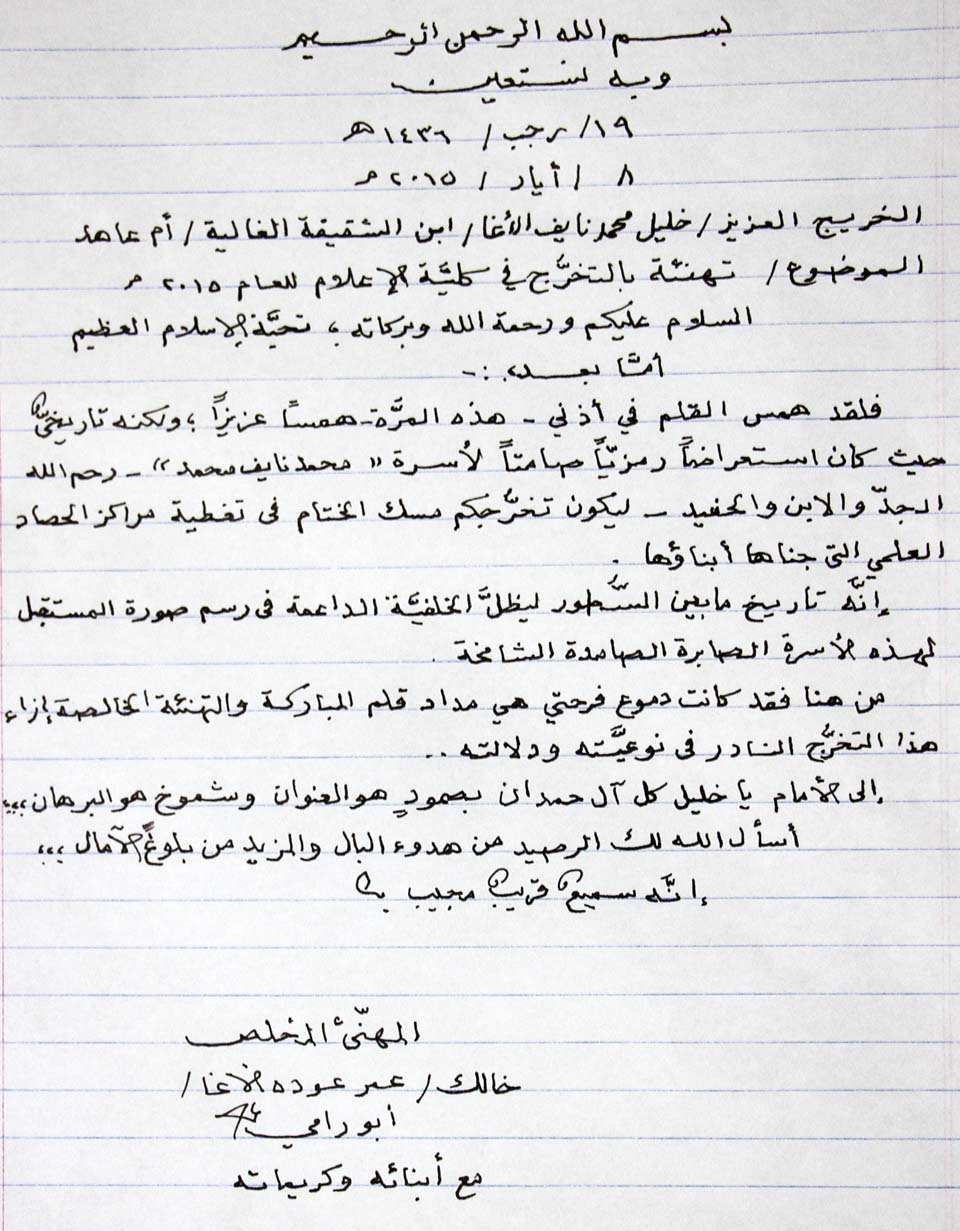 الرئيسة/نشاط/تهنئة بالتخرج في كلية الإعلام - بقلم الخال عمر عودة الأغا نشاط تهنئة بالتخرج في كلية الإعلام - بقلم الخال عمر عودة الأغا تاريخ النشر : الثلاثاء | 12-05-2015 | 12:39 9320 تهنئة بالتخرج في كلية الإعلام للعام 2015 بقلم الخال أ. عمر عودة الأغا . اضغط هنا للتواصل أو التعرف على أ. خليل محمد نايف محمد حمدان الأغا يمكنك تلقي أحدث الأخبار أول بأول بانضمامك لإحدى مجموعات الواتساب الخاصة بالعائلة من خلال الضغط هنـا اظهر المزيد