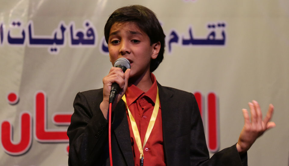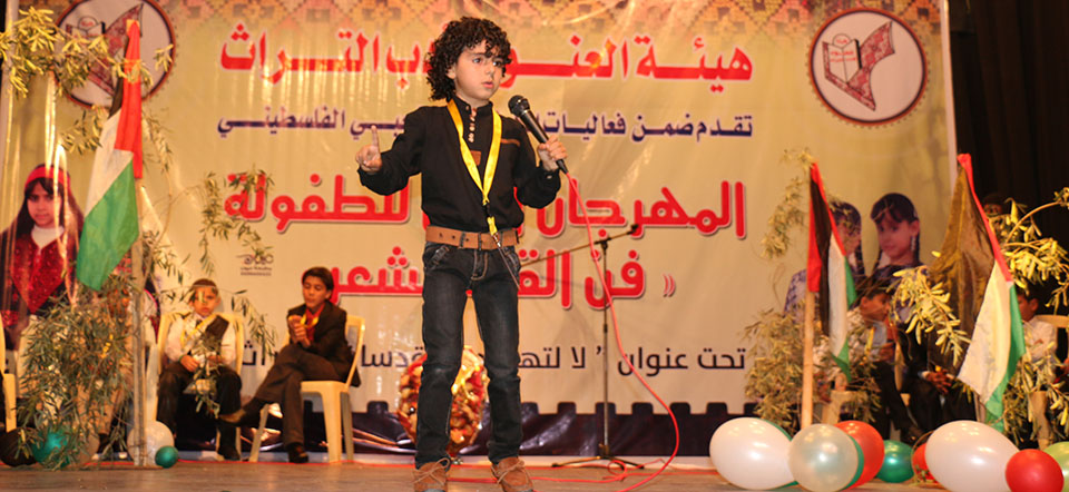 غزة- مسرح المسحال- الإثنين الموافق 11-5-2015- نظمت هيئة العنود لأدب التراث، بمدينة غزة،، مهرجان الطفولة الأول لإلقاء الشعر، وسط حضور واسع من الجمهور الفلسطيني من كافة مناطق قطاع غزة.