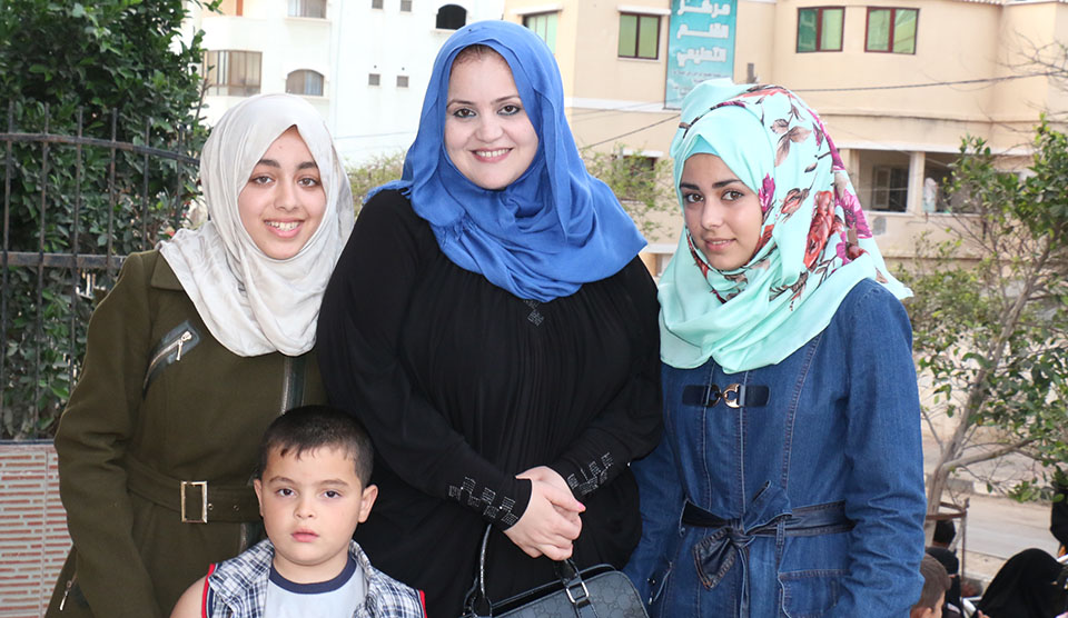 أ. زكريا أحمد النجار وكريمته الشاعرة اسماء وشقيقته أ. أسماء وكريمتها دانا غزال، أ. مروة النجار