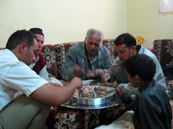 عيد الأضحى المبارك – اوباري ليبيا - الثلاثاء منزل المهندس رياض حمدان الأغا بأوباري بمناسبة عيد الأضحى المبارك أقامت أسرة المهندس رياض حمدان الآغا وبعض من حضر من جيرانها الكرام ، مائدة غداء احتفالا بهذه المناسبة المباركة ، وقد تمنينا جميعا لو أن هذا اللقاء كان بحضور أهلنا في فلسطين ، أو حتى أبناء العائلة المقيمين في ليبيا والذين هم أيضا باعدت بيننا وبينهم المسافات، فأقـرب مسافة بيننا وبينهم تقدر بـأكثر من 1000 كم ، ونحمد الله أن قربت بيننا ثورة الاتصالات كالهاتف والانترنت ، بالإضافة إلى موقع عائلتنا الحبيبة موقع النخلة .