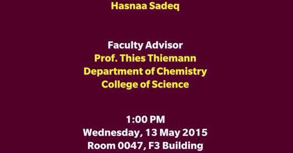 الرئيسة/مناسبات خارج العائلة/الإمارات- حصول الباحثة حسناء عبد الكريم صادق على درجة الماجستير مناسبات خارج العائلة الإمارات- حصول الباحثة حسناء عبد الكريم صادق على درجة الماجستير تاريخ النشر : الخميس | 14-05-2015 | 23:26 5259 حصول الباحثة حسناء عبد الكريم صادق على درجة الماجستير فى الكيمياء العضوية في جامعة الإمارات، بتقدير ممتاز، وألف مبارك يمكنك تلقي أحدث الأخبار أول بأول بانضمامك لإحدى مجموعات الواتساب الخاصة بالعائلة من خلال الضغط هنـا اظهر المزيد