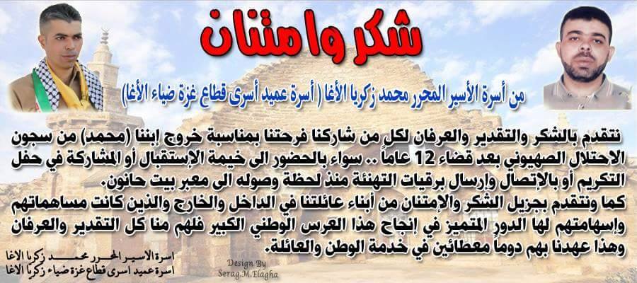 الرئيسة/متفرقات/شكر وامتنان من أسرة الأسير المحرر محمد زكريا الأغا متفرقات شكر وامتنان من أسرة الأسير المحرر محمد زكريا الأغا تاريخ النشر : السبت | 16-05-2015 | 23:28 5350 اضغط هنا للتواصل أو التعرف على أ. محمد زكريا شاكر الأغا يمكنك تلقي أحدث الأخبار أول بأول بانضمامك لإحدى مجموعات الواتساب الخاصة بالعائلة من خلال الضغط هنـا اظهر المزيد